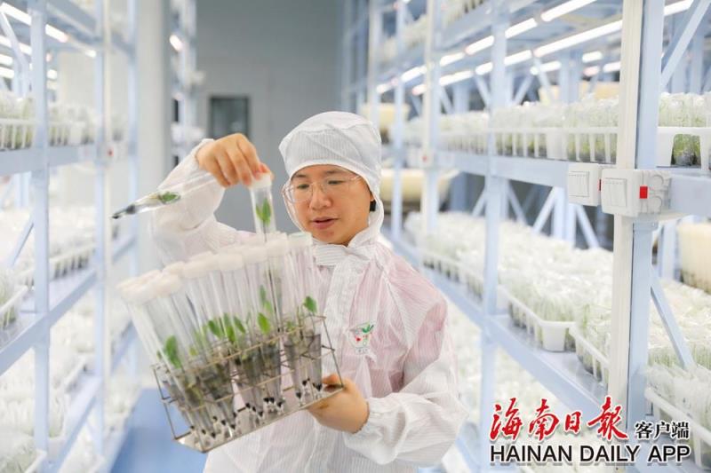 当前位置: 首页 » 新闻中心 » 媒体报道 【海南日报客户端】组图|海南橡胶组培苗产能位居世界前列 来源:中国热带农业科学院 作者: 海南日报记者张茂 点击数: 次 发布时间:2021-09-28 我要分享 打印 【字体: 大 中 小 】 据海南日报客户端|记者 张茂 摄影报道2021年9月22日,在海南天然橡胶新型种植材料创新基地,中国热带农业科学院橡胶研究所的科研人员在观察橡胶树组培苗生长情况。据了解,该基地具备年产超100万株橡胶组培苗的能力,走在世界前列,实现全国橡胶树组培苗1/10的供苗能力。组培苗具有完整继承母株特性、生长速度快、抗性优良等优点。目前,生产的橡胶树组培苗已经种植到了海南、云南、广东三大植胶区,推广面积达2万亩。